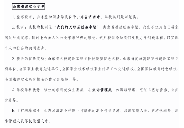 山东旅游职业学院学院简介