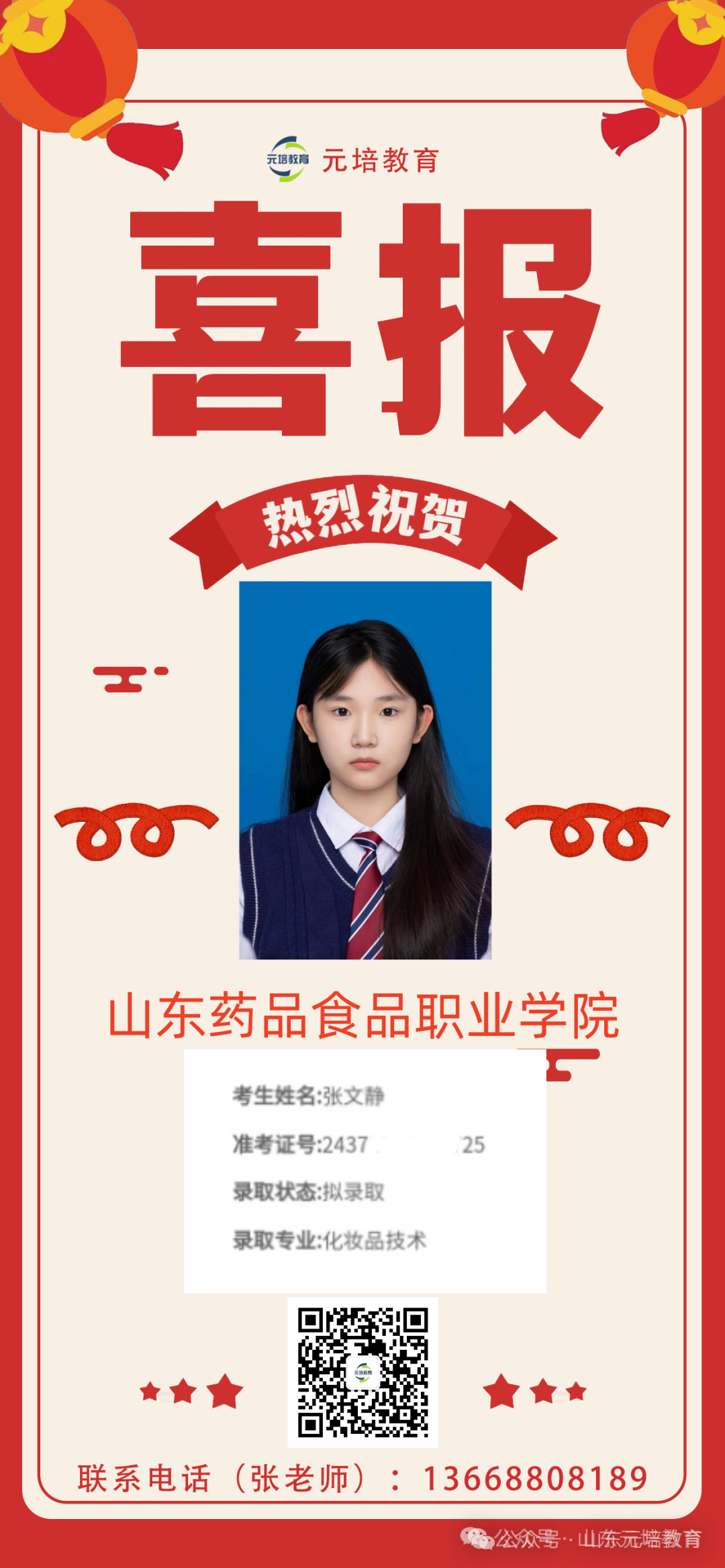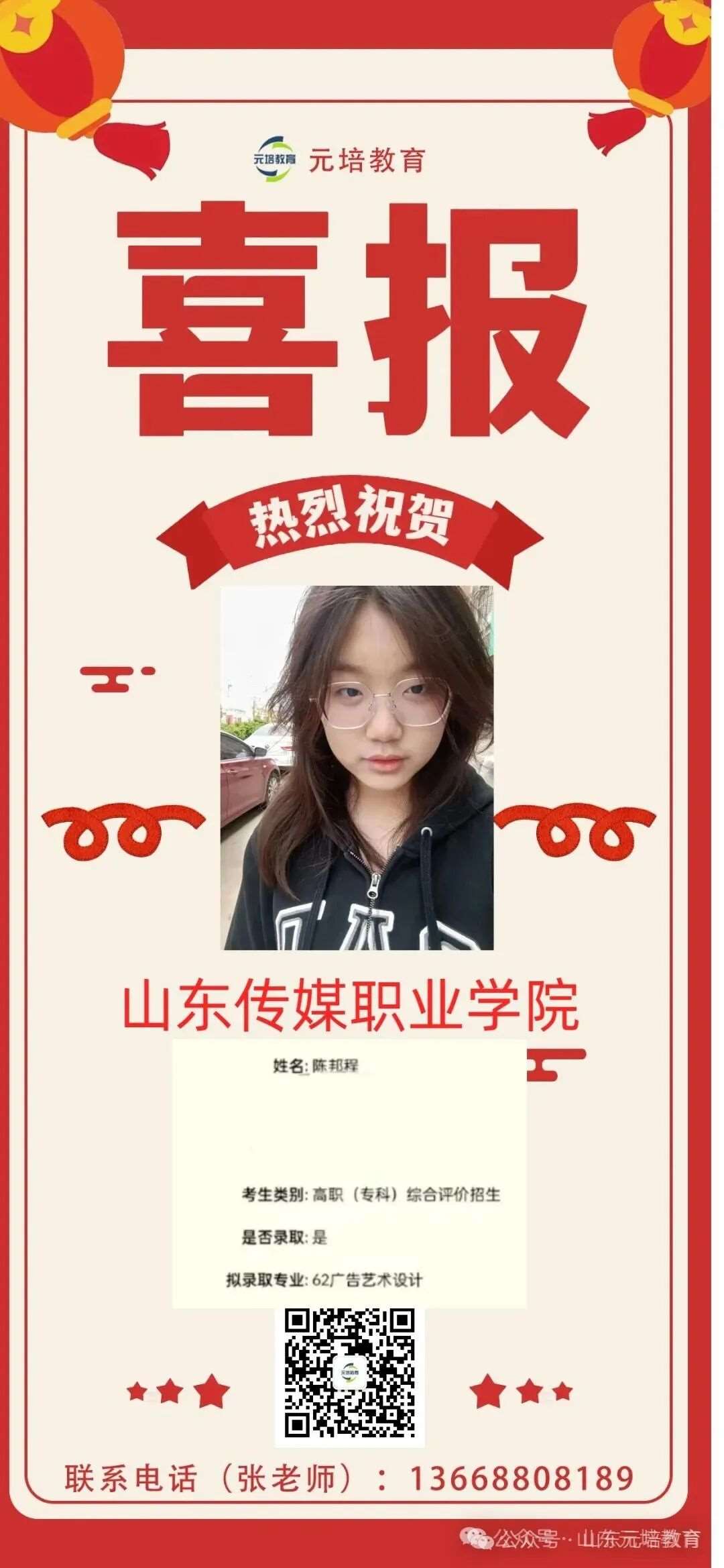 山东师范大学新闻与传媒学院戏剧与影视学硕士研究生,综评/单招教学主管,曾参与中小学及幼儿园语文教师资格证统考阅卷、山东省文学编导统考文学评论与写作科目阅卷。