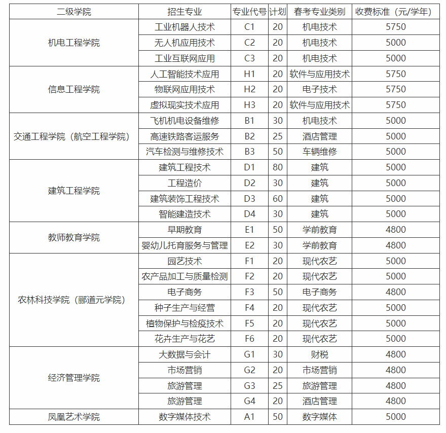附(2025年单独招生计划)